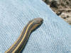 Perhaps because the early spring weather in the 60s was cold to the snake, it was quite tame, and let me pick it up, move it off the road, and take some pictures of it while being held.